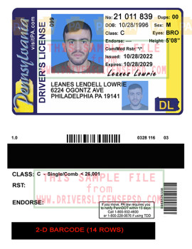 US Pennsylvania Drivers License Details:This verification US Pennsylvania Drivers License PSD can be used to verify the identity of an individual. With this Drivers License psd file, you can also modify all information on the Drivers License, include name, dob, expire date, Drivers License number, photo, signature,...This file using for confirm your identity on shop online, social network website,…