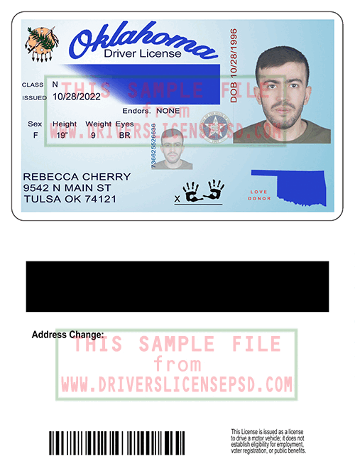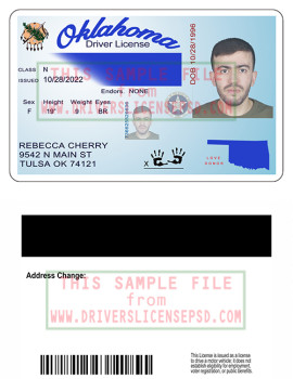 US Oklahoma Drivers License Details:This verification US Oklahoma Drivers License PSD can be used to verify the identity of an individual. With this Drivers License psd file, you can also modify all information on the Drivers License, include name, dob, expire date, Drivers License number, photo, signature,...This file using for confirm your identity on shop online, social network website, payment…