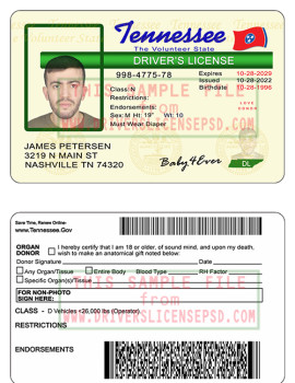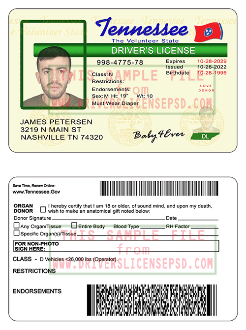 US Tennessee Drivers License Details:This verification US Tennessee Drivers License PSD can be used to verify the identity of an individual. With this Drivers License psd file, you can also modify all information on the Drivers License, include name, dob, expire date, Drivers License number, photo, signature,...This file using for confirm your identity on shop online, social network website,…