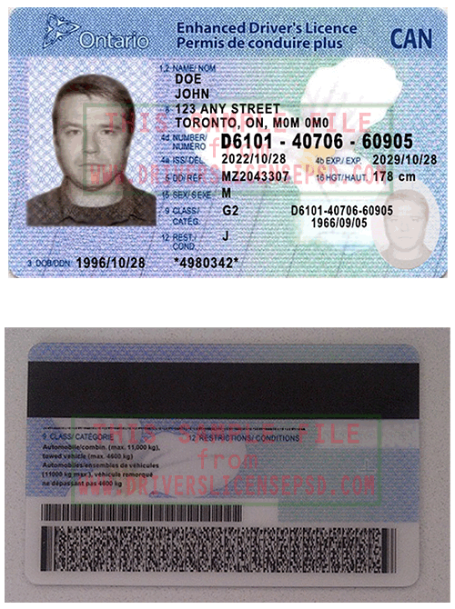 Canada Ontario Drivers License Details:This verification Canada Ontario Drivers License PSD can be used to verify the identity of an individual. With this Drivers License psd file, you can also modify all information on the Drivers License, include name, dob, expire date, Drivers License number, photo, signature,...This file using for confirm your identity on shop online, social network website,…