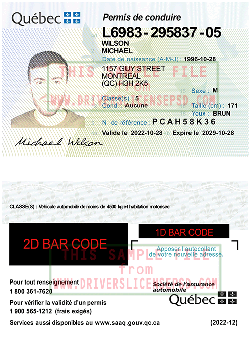 Canada Quebec Drivers License Details:This verification Canada Quebec Drivers License PSD can be used to verify the identity of an individual. With this Drivers License psd file, you can also modify all information on the Drivers License, include name, dob, expire date, Drivers License number, photo, signature,...This file using for confirm your identity on shop online, social network website,…