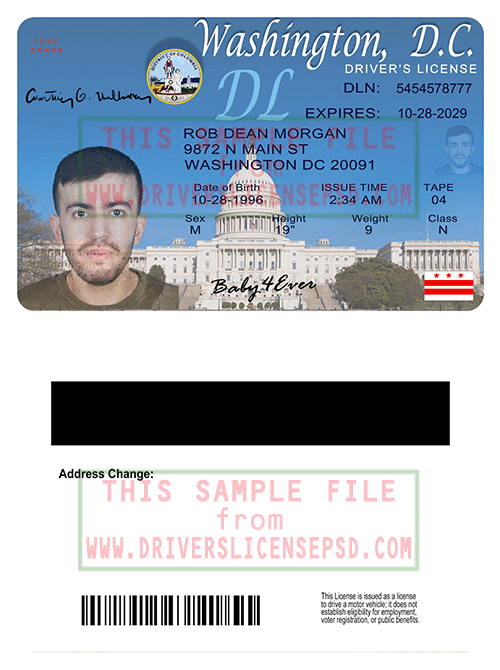 US Washington DC Drivers License Details:This verification US Washington DC Drivers License PSD can be used to verify the identity of an individual. With this Drivers License psd file, you can also modify all information on the Drivers License, include name, dob, expire date, Drivers License number, photo, signature,...This file using for confirm your identity on shop online, social network website,…