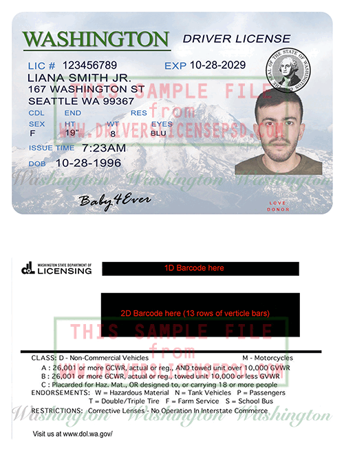 US Washington Drivers License Details:This verification US Washington Drivers License PSD can be used to verify the identity of an individual. With this Drivers License psd file, you can also modify all information on the Drivers License, include name, dob, expire date, Drivers License number, photo, signature,...This file using for confirm your identity on shop online, social network website,…