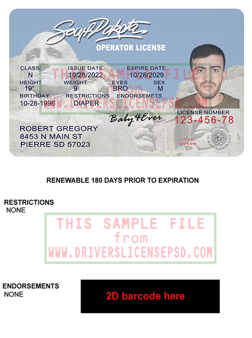 US South Dakota Drivers License Details:This verification US South Dakota Drivers License PSD can be used to verify the identity of an individual. With this Drivers License psd file, you can also modify all information on the Drivers License, include name, dob, expire date, Drivers License number, photo, signature,...This file using for confirm your identity on shop online, social network website,…