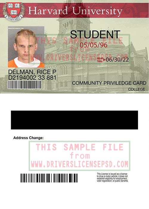 US Harvard University Student ID Card Details:This verification US Harvard University Student ID Card PSD can be used to verify the identity of an individual. With this Student ID Card psd file, you can also modify all information on the Student ID Card, include name, dob, expire date, Student ID Card number, photo, signature,...This file using for confirm your identity on shop online, social…