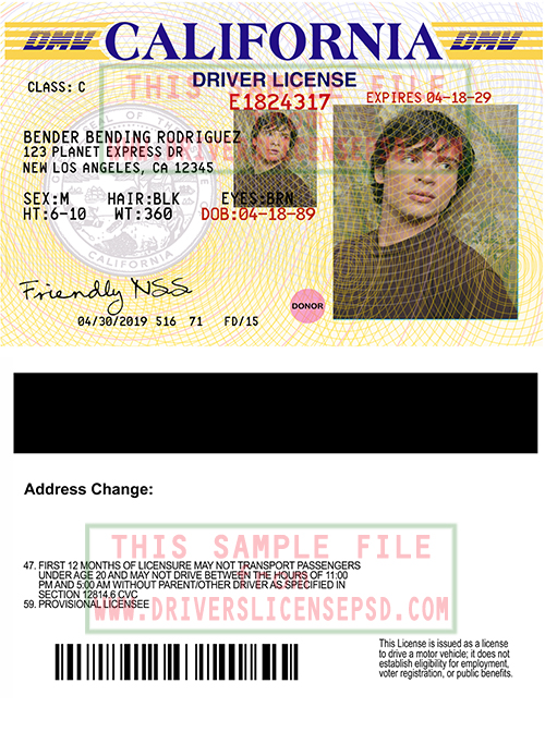 This verification US California Drivers License Under 21 PSD can be used to verify the identity of an individual.