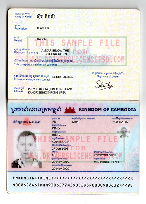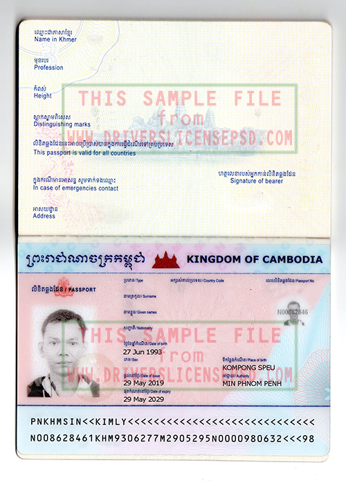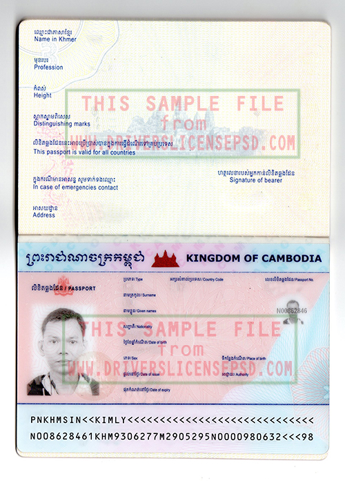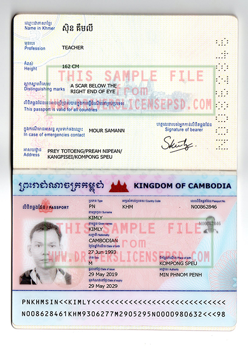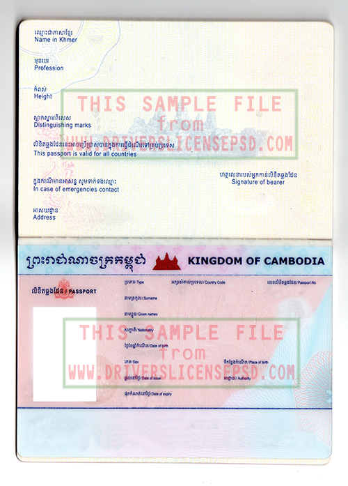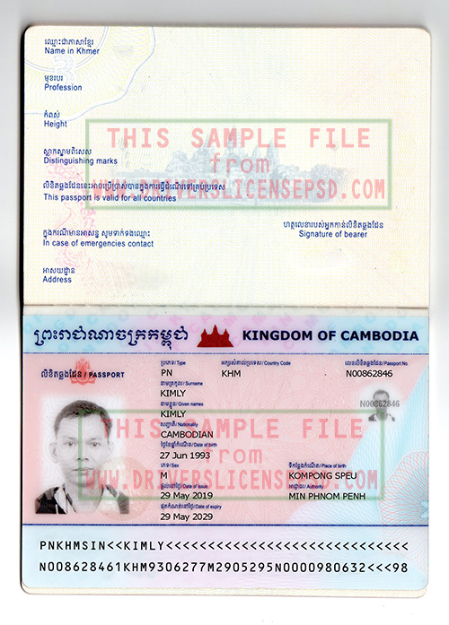 This verification Cambodia Passport 01 PSD can be used to verify the identity of an individual.