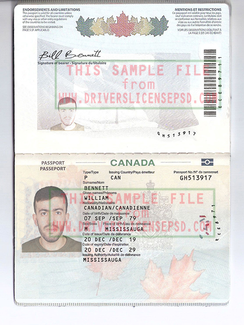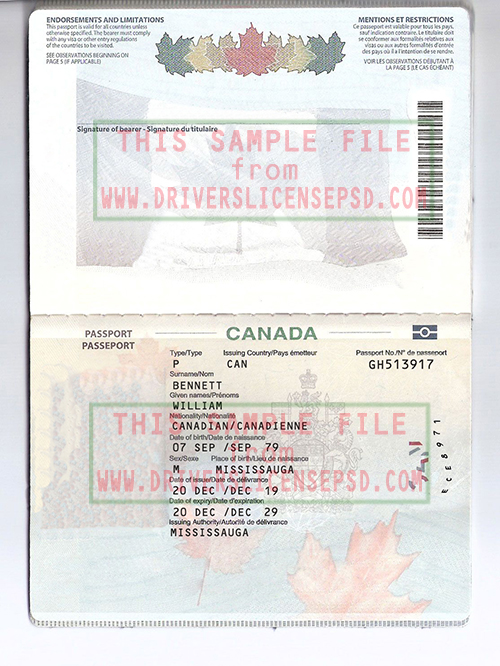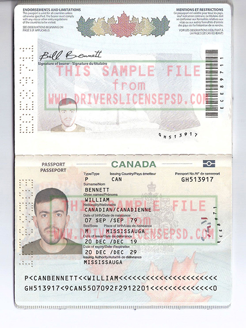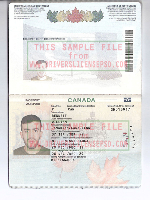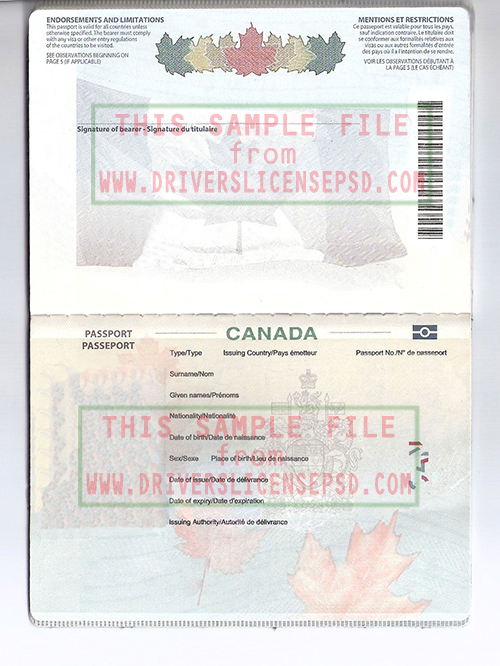 This verification Canada Passport 01 PSD can be used to verify the identity of an individual.