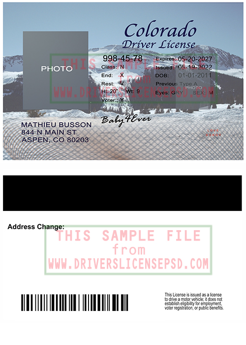 This verification US Colorado Drivers License PSD can be used to verify the identity of an individual.