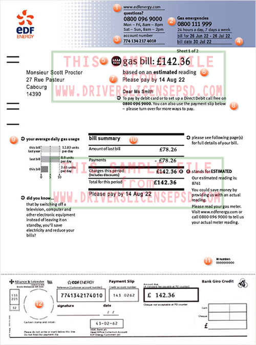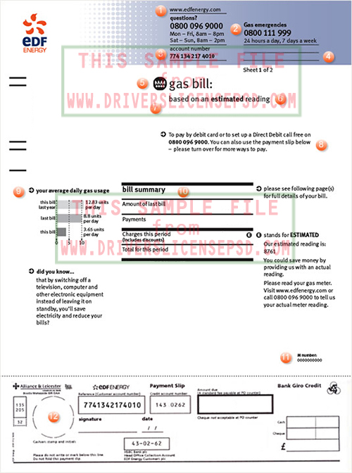 With this EDF Energy Utility Gas Bill PSD file, you can also modify all information on the template, include name, address, account number, date,...