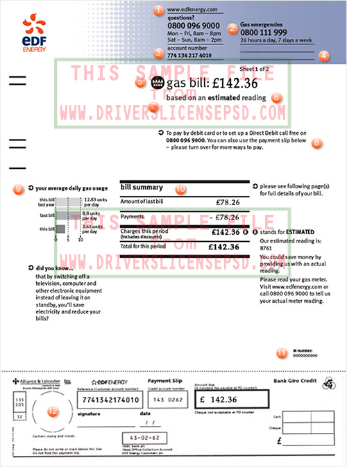 EDF Energy Utility Gas Bill PSD Details: