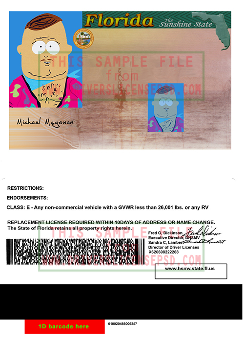 This verification US Florida Drivers License PSD can be used to verify the identity of an individual.