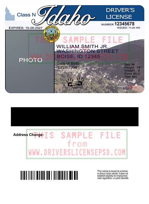 This verification US Idaho Drivers License PSD can be used to verify the identity of an individual.