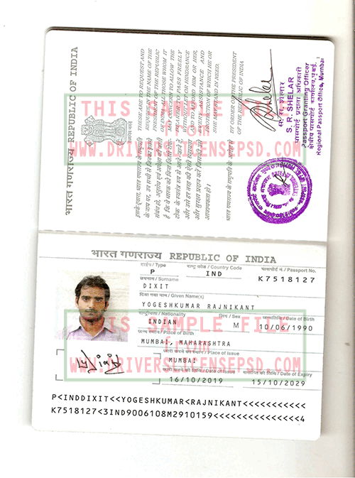 This verification India Passport 01 PSD can be used to verify the identity of an individual.