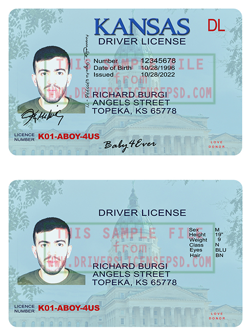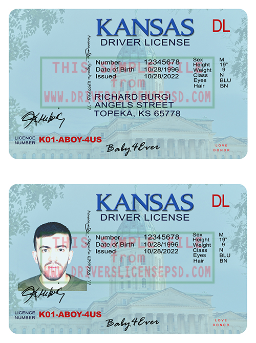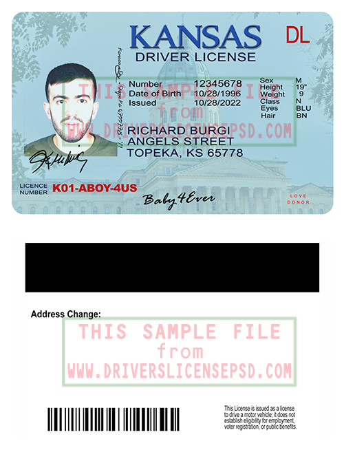 This verification US Kansas Drivers License PSD can be used to verify the identity of an individual.