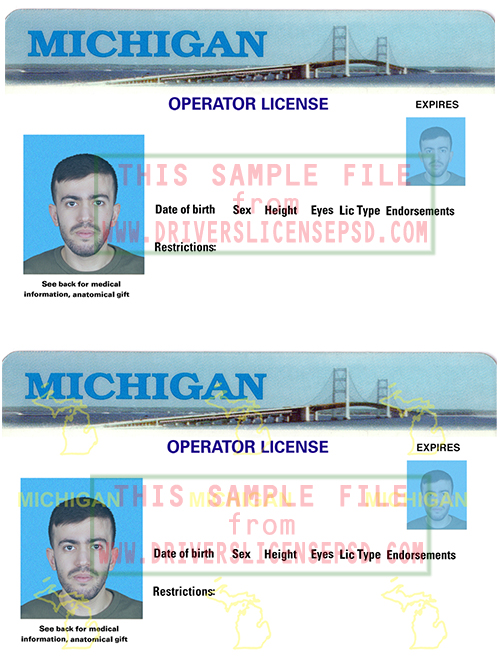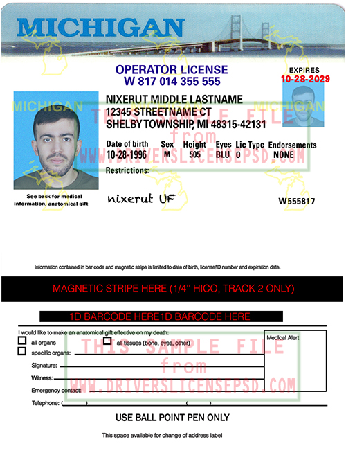 This verification US Michigan Drivers License PSD can be used to verify the identity of an individual.