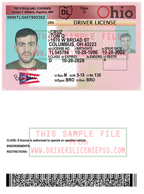 This verification US Ohio Drivers License PSD can be used to verify the identity of an individual.