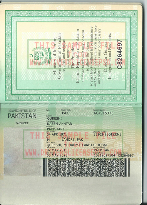 This verification Pakistan Passport 01 PSD can be used to verify the identity of an individual.