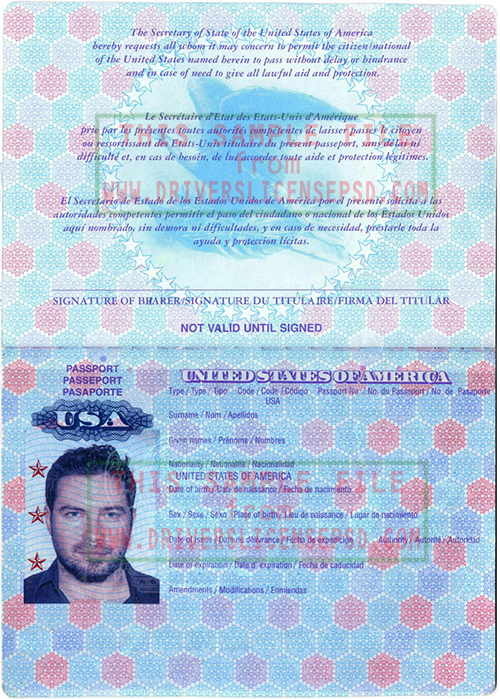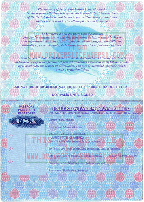 With this passport psd file, you can also modify all information on the passport, include name, dob, expire date, passport number, photo, signature,...