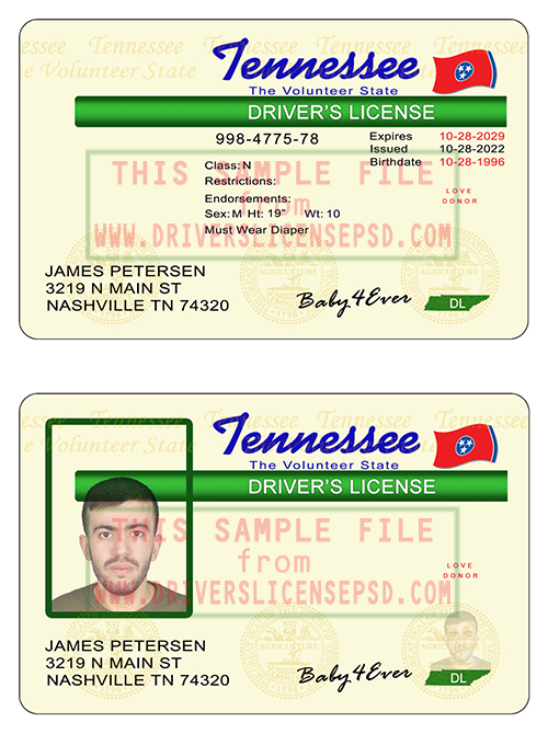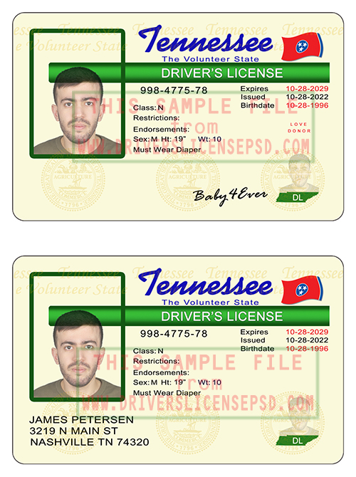 This verification US Tennessee Drivers License PSD can be used to verify the identity of an individual.