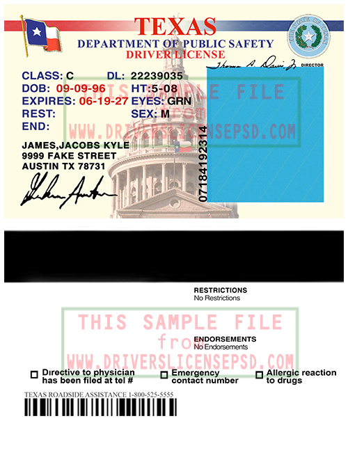 This verification US Texas Drivers License PSD can be used to verify the identity of an individual.