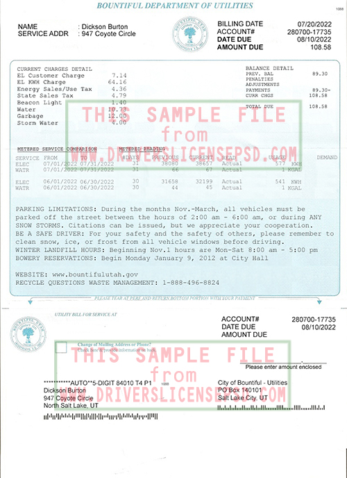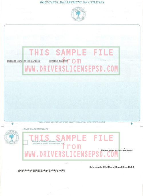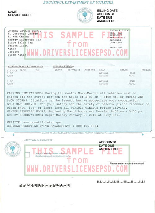 This verification US Bountiful Department Utility Bill scan, can be used to verify the identity of an individual.