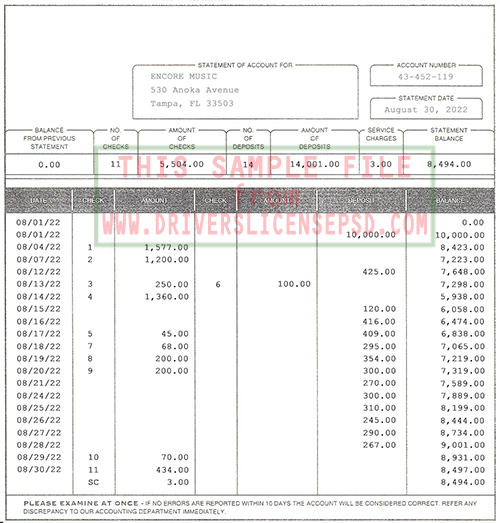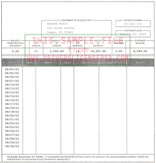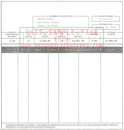 With this Bank Statement psd file, you can also modify all information on the Bank Statement, include name, dob, expire date, Bank Statement number, photo, signature,...