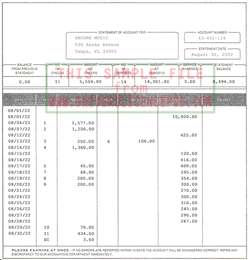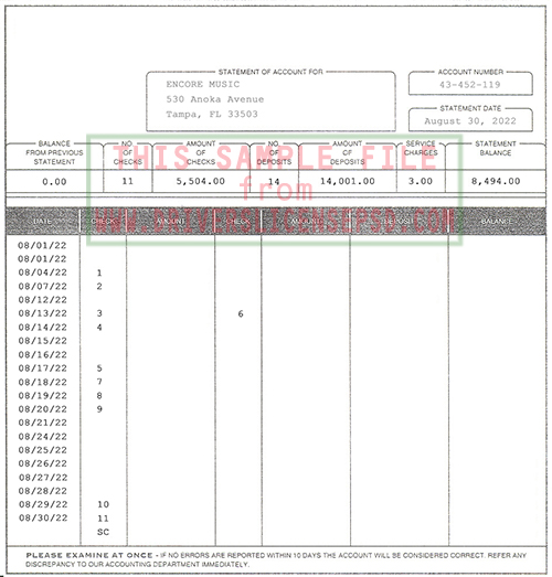 US Peoples National Bank Bank Statement Details: