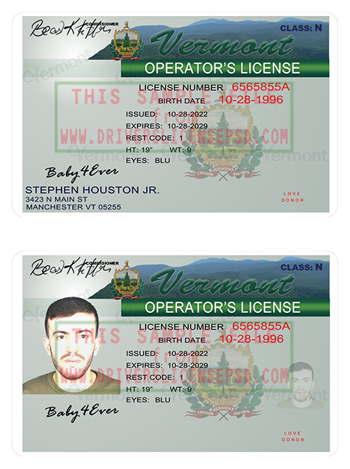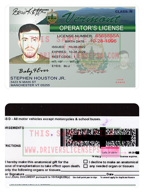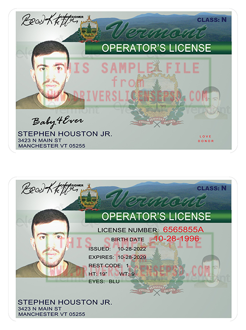 This verification US Vermont Drivers License PSD can be used to verify the identity of an individual.