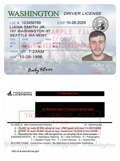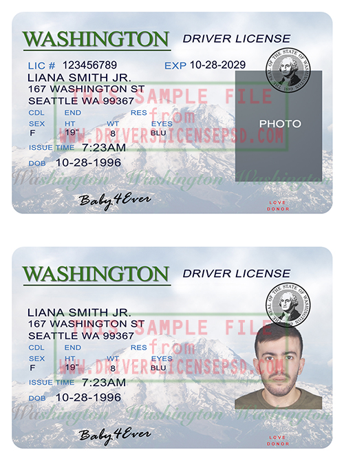 This verification US Washington Drivers License PSD can be used to verify the identity of an individual.