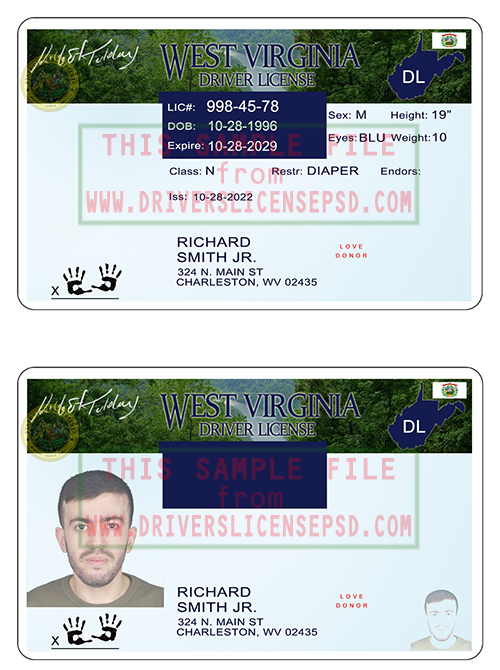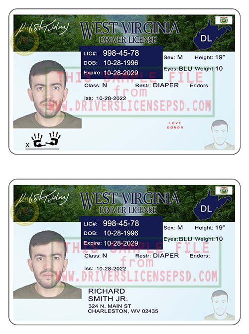 This verification US West Virginia Drivers License PSD can be used to verify the identity of an individual.