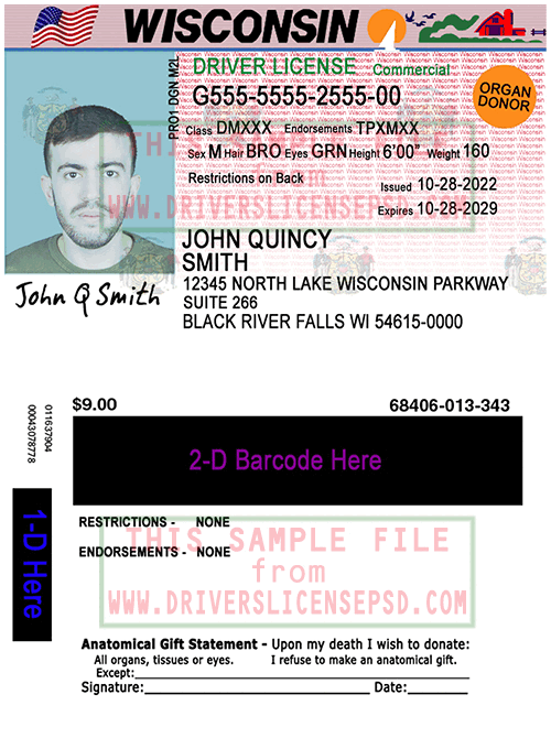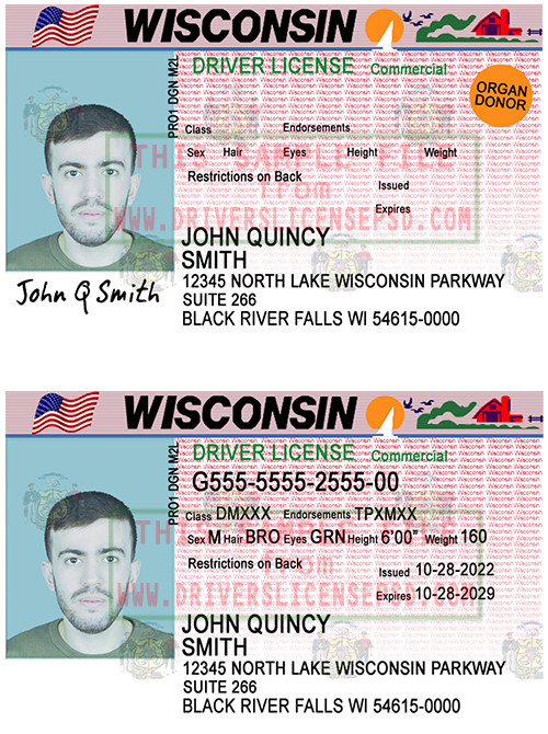 This verification US Wisconsin Drivers License PSD can be used to verify the identity of an individual.